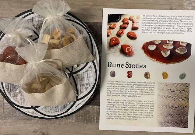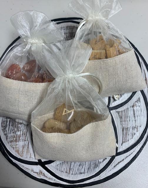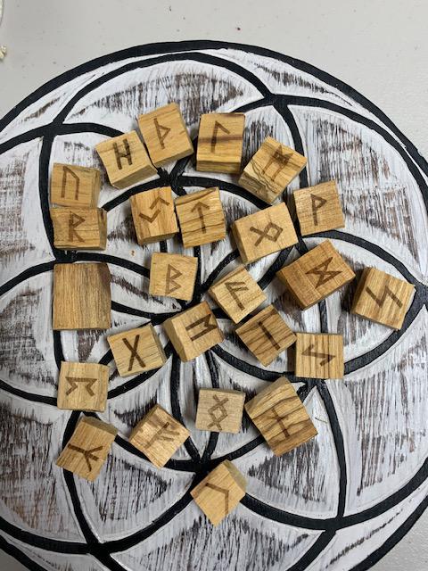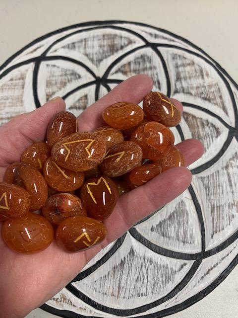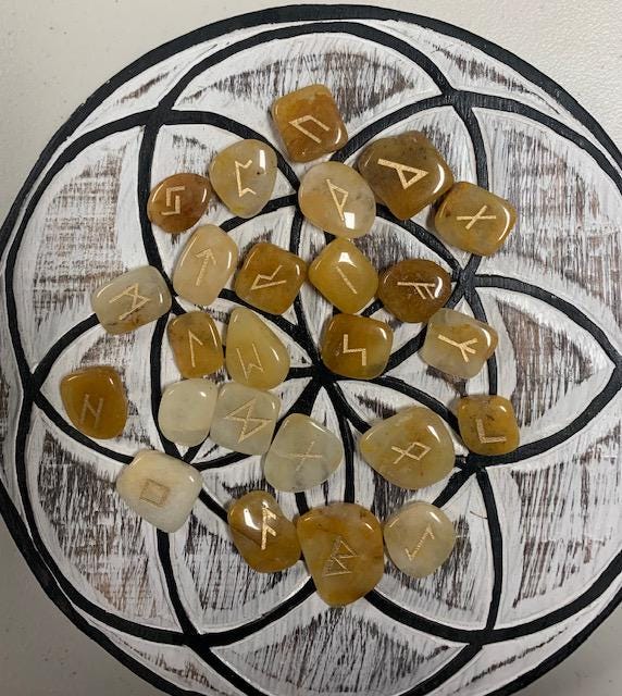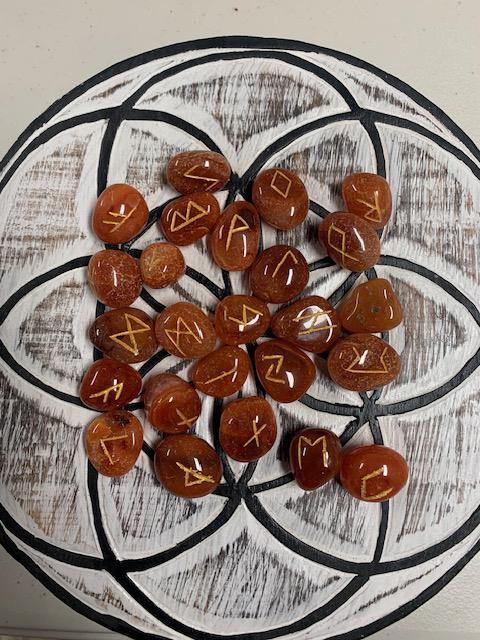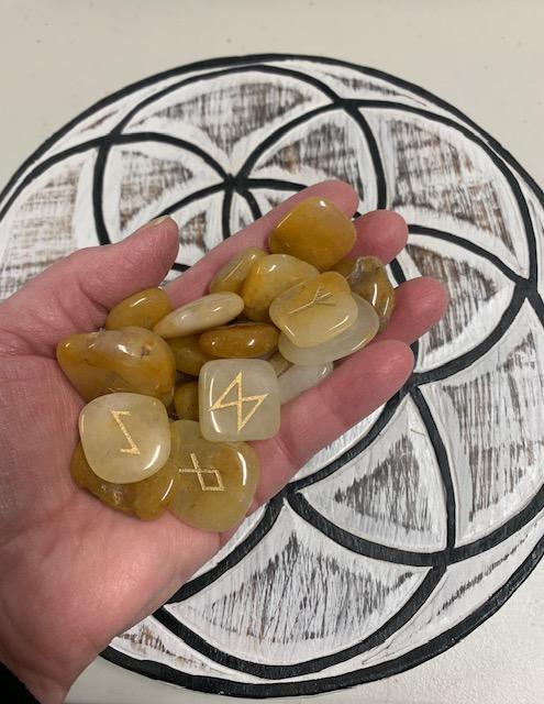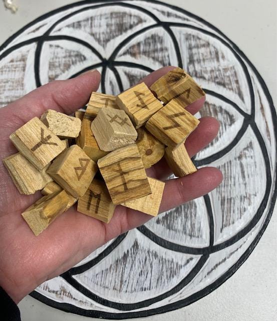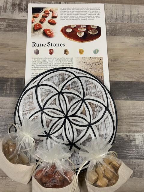 On sale! $180+ Value3 sets of runes:Blood Red OnyxYellow JasperPalo SantoAlso includes: Wooden Seed of Life Grid (9" diameter)8 page black & white printout with meanings1 colour information card 8 1/2 x 11
